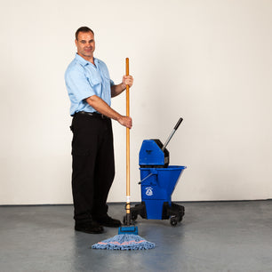 Nuestros Mangos de Mopa húmeda Sure Grip son nuestros mangos de mopa húmeda más duraderos. Los herrajes de acero pintadas con electrostática, agarran firmemente el cabezal de la mopa. Si está familiarizado con este tipo de mangos, son estupendos, si no, puede ser un poco difícil de manejar. El diseño de estos mangos permite separar la mopa húmeda sin llegar a tocarla. Nuestros Mangos de Mopa Húmeda Sure Grip están fabricados en Estados Unidos.