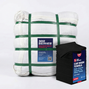 The 300 Series Microfiber Car Wash Towels are designed with a lightweight microfiber blend and edgeless construction, making them ideal for high-volume use in express car washes and professional cleaning operations. Their edgeless design minimizes the risk of fraying, while ensuring a smooth, streak-free finish every time. Despite their lighter weight, these towels deliver reliable absorbency, quickly soaking up water and debris. Engineered for professional environments, they maintain softness and performance even after hundreds of washes, offering a long-lasting and cost-effective solution.