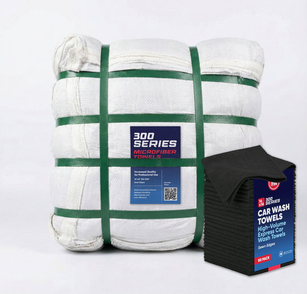 Microfiber towels are designed to absorb water quickly and leave a streak-free finish, which reduces the time it takes employees to dry and detail each vehicle. Their lightweight design (Series 200) or full-weight absorbency (Series 300) lets car wash teams move faster while using fewer towels per job. This efficiency adds up across hundreds of cars per day, making microfiber the most cost-effective choice for high-volume operations.