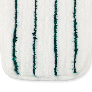 Fabricación: La almohadilla de microfibra para fregar de 20" de Microfiber Wholesale es una almohadilla agresiva para fregar que no deja pelusa y que está fabricada con una mezcla de poliéster y poliamida en bucle con tiras de fregado de poliéster. El hilo frontal de microfibra / poliéster está cosido a un soporte de estilo gancho y argolla con costura overlock en los bordes. Esta mopa tiene un hilo de microfibra muy denso que pesa 990 gramos por metro cuadrado. Entre el hilo de microfibra y el soporte de gancho y argolla hay un núcleo de espuma de 7 mm de grosor. El propósito del núcleo de espuma es ayudar a la mopa de microfibra a mantener su forma a lo largo de la vida de la mopa y absorber líquidos (agua, desinfectante, limpiador) que ayudarán a emulsionar el polvo, la suciedad y la grasa para una limpieza eficaz.