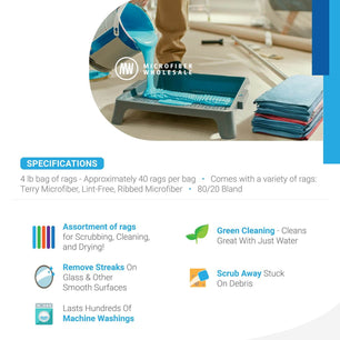 Looking for a versatile cleaning solution? This case of six 4lb. bag of microfiber rags includes a variety of towel types and sizes, perfect for tackling a wide range of cleaning tasks.